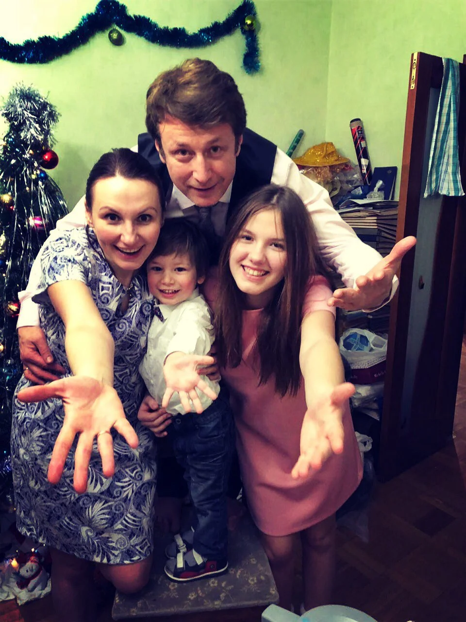 Потом я стал ходить в нашу православную церковь, там у меня есть свой духовник. Там же мы венчались с женой. У меня и супруга большая молитвенница (Актриса Анна Гришина, а сейчас Апрельская, снималась в таких фильмах, как "Старые клячи", "Петровка, 38. Команда Семенова", "Монро", "Висяки-2. Отдел контрольных преступлений". "Последняя статья журналиста"). У нее была дочка, когда мы поженились - Настя, я ее воспитывал с 7 лет. В прошлом году мы ее выдали замуж. Моему первенцу, Трифону - 9 лет. Он родился 14 февраля в день Святого мученика Трифона.