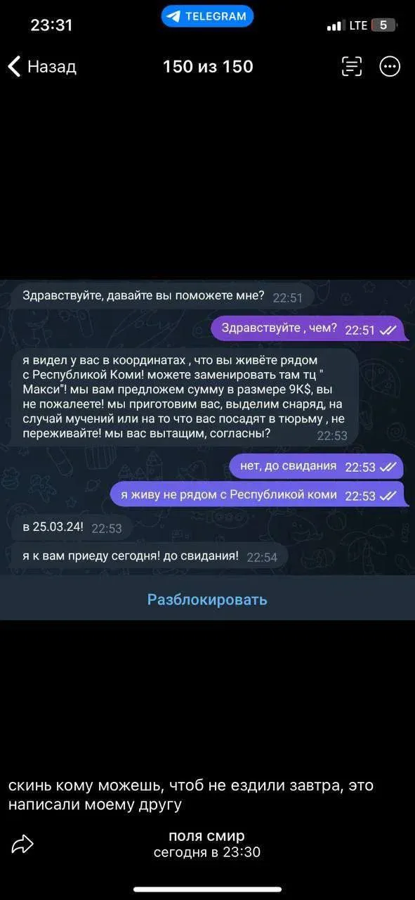 Сегодня утром в городе Сыктывкаре всплыла тревожная информация: школьникам и студентам могут быть отправлены предложения о совершении теракта в местных торговых центрах и других местах массового скопления людей. Полиция уже получила скрины подобных сообщений, которые были отправлены неизвестными через мессенджер Телеграм. Это вызвало панику среди жителей города, ведь всё еще свежи в памяти ужасные события в Москве.