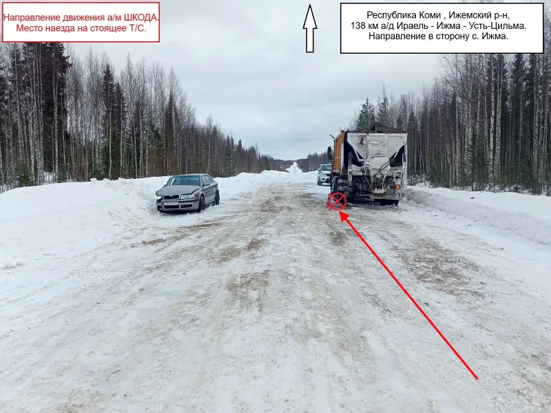 В Коми 29-летний водитель Skoda Octavia врезался в стоящий на дороге МАЗ
