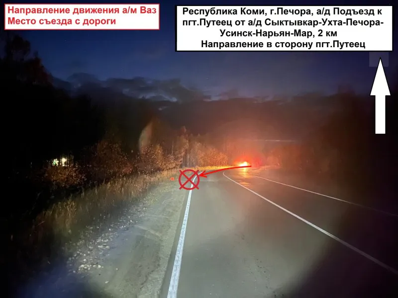 По предварительным данным, мужчина, управляя автомобилем ВАЗ-213100, двигался со стороны поселка Путеец в сторону города Печора. Внезапно, не справившись с рулевым управлением, он допустил съезд с дороги. Автомобиль выехал в правый по ходу движения кювет и на полном ходу врезался в дерево.