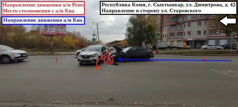 В Сыктывкаре произошло дорожно-транспортное происшествие с участием двух легковых автомобилей. Как сообщили в Управлении Госавтоинспекции Республики Коми, авария случилась 9 октября около 8:30 утра на одном из городских перекрестков. 22-летний водитель автомобиля Renault Logan, двигаясь по улице Маркова в направлении улицы Димитрова, не уступил дорогу машине Kia Spectra, которая следовала по главной дороге. В результате произошло столкновение двух транспортных средств.
