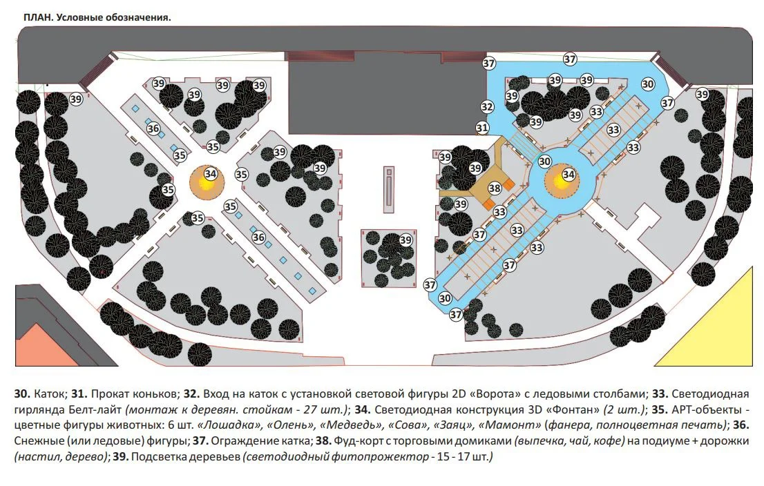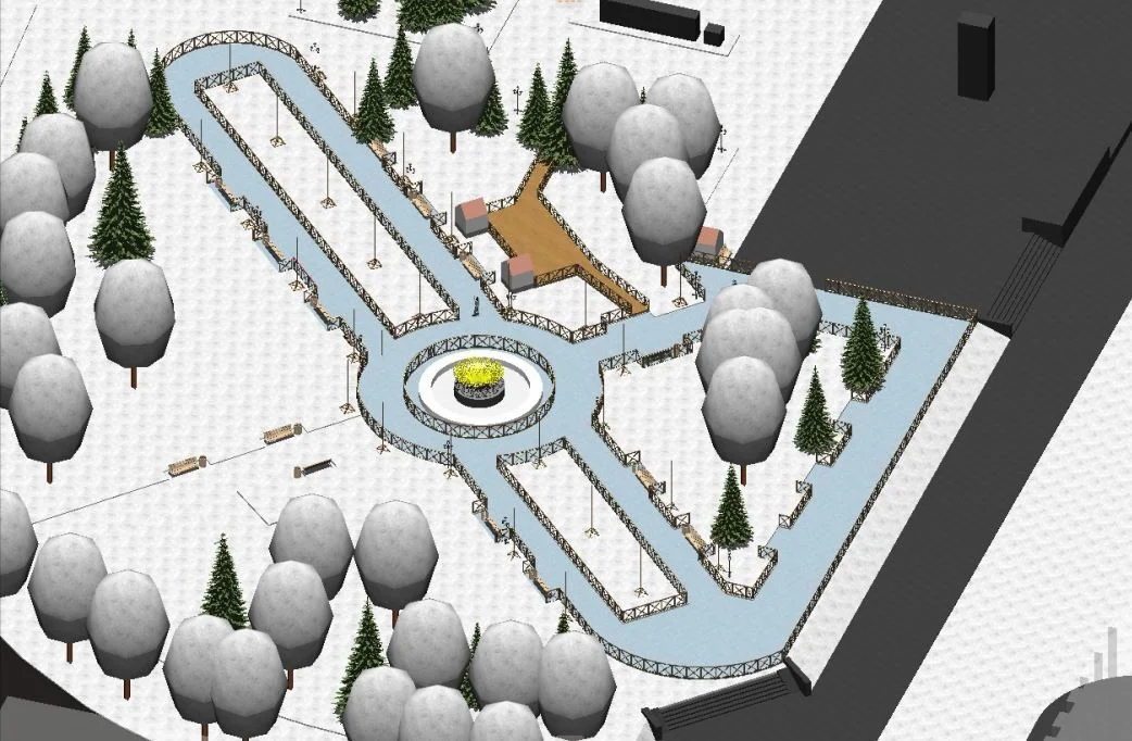Главный акцент будет сделан на самой площади, где будет обустроен ледовый городок. Лед для него сейчас аккуратно намораживается на озерах под Сыктывкаром. Вокруг новогодней ели будут установлены четыре перголы из дерева в симметричном порядке. Они будут служить украшением и защитой от ветра.
