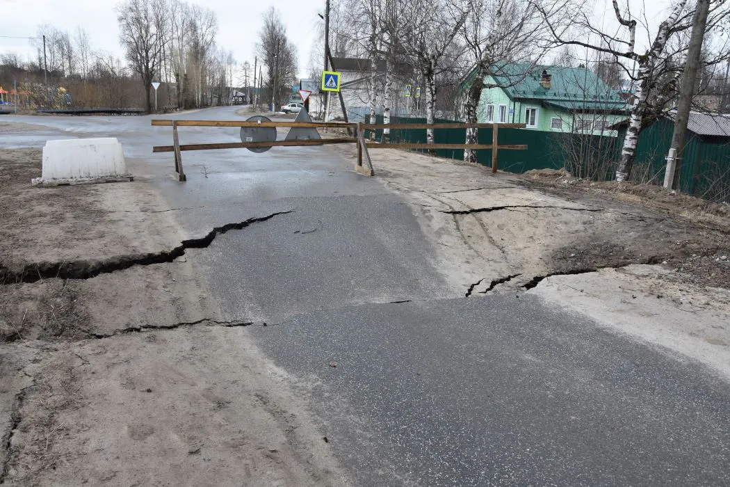 Как отмечается в публикации газеты "Новая жизнь", в ночь на третье апреля произошло обрушение дорожного покрытия на улице Советской в селе Койгородок, вызванное воздействием воды и обрушением подпорных стен аварийного моста. Для оценки ситуации, четвертого числа в район были направлены представители Министерства строительства и ЖКХ Коми, а также Управтодора республики.