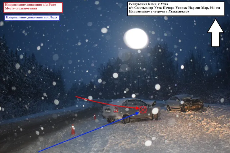 В Коми столкнулись автомобили Renault и "Лада", травмы получили 2 человека