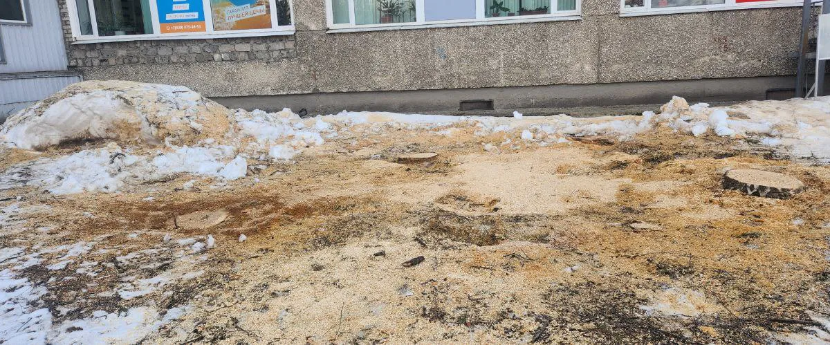 Вырубка деревьев началась еще в конце 2023 года, тогда были срублены березы, ели и небольшие деревца возле кафе. А весной были уничтожены рябины и березы.