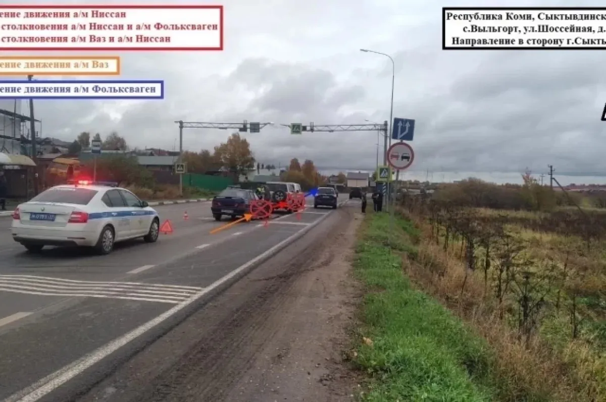 30 сентября в Сыктывдинском районе Республики Коми произошло серьёзное дорожно-транспортное происшествие с участием трёх автомобилей. По данным ГИБДД региона, авария произошла около 9:45 утра на одной из основных автодорог, связывающих Сыктывкар с соседними регионами — "Чебоксары – Йошкар-Ола – Киров – Сыктывкар". В результате ДТП пострадала 28-летняя женщина, управлявшая автомобилем ВАЗ.