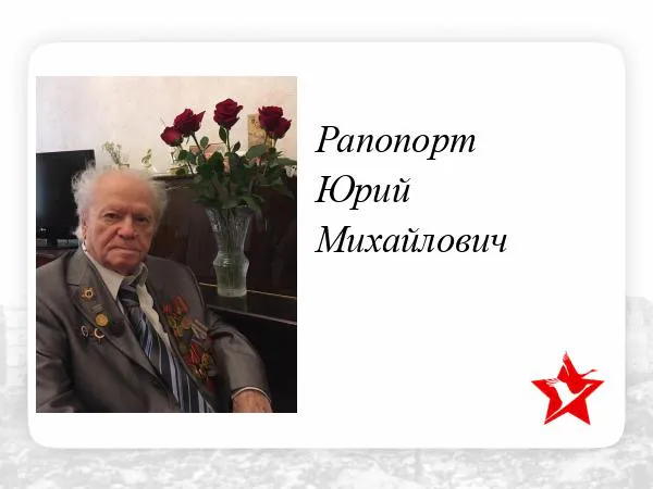 Юрий Михайлович Рапопорт родился 22 декабря 1923 года в селе Усть-Цильма Коми АССР. В начале Великой Отечественной войны он был призван служить в Красную Армию, а уже в 1942 году, будучи лейтенантом, его направили на Западный фронт в действующую армию, где он командовал взводом 1324-го стрелкового полка 50-й армии.