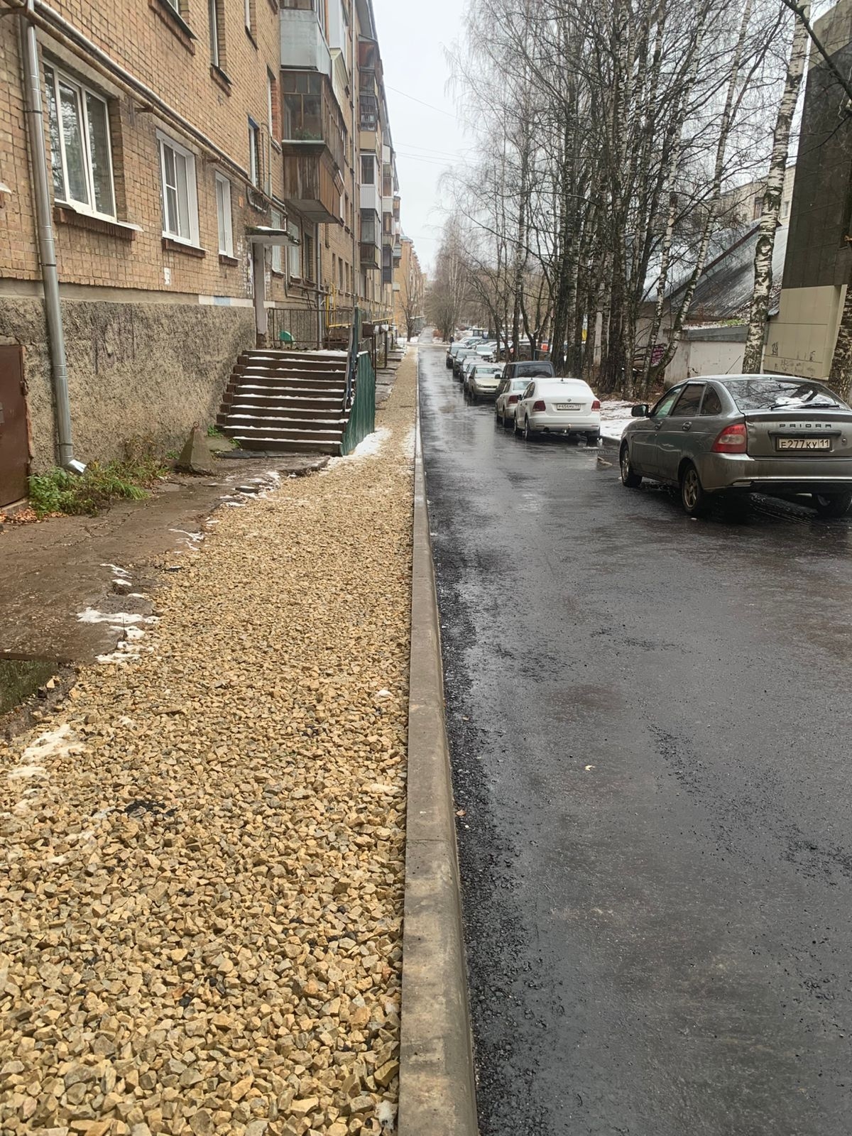 Вместо асфальта — временный щебень: ремонт тротуаров в столице Коми отложили до лета из-за неожиданно разрушенной отмостки у дома.