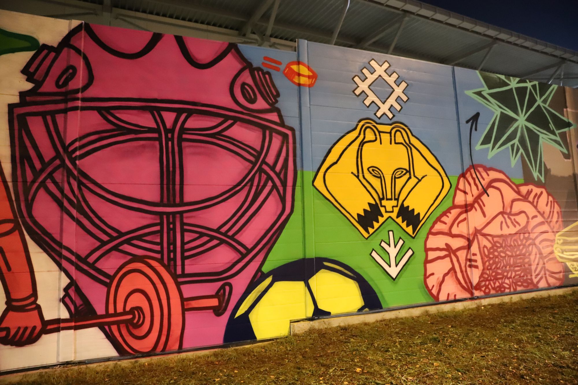Яркое произведение украсило шумоизоляционное ограждение Центрального стадиона города.