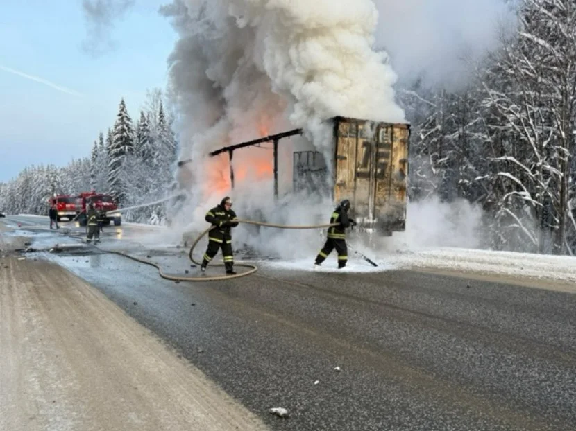 В тот же день пожарные расчёты работали на выезде в других районах. На 515-м километре автодороги Чебоксары–Сыктывкар в Прилузском районе вспыхнул грузовой автомобиль. Причиной назвали техническую неисправность узлов и систем транспорта.